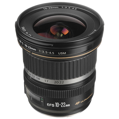 Cubriendo un rango de gran angular versátil, el EF-S 10-22mm f/3.5-4.5 USM está diseñado para las cámaras réflex digitales APS-C con montura EF-S de Canon, y proporciona un rango de distancia focal equivalente de 16-35.2mm para adaptarse al trabajo en una amplia gama de condiciones de disparo.
